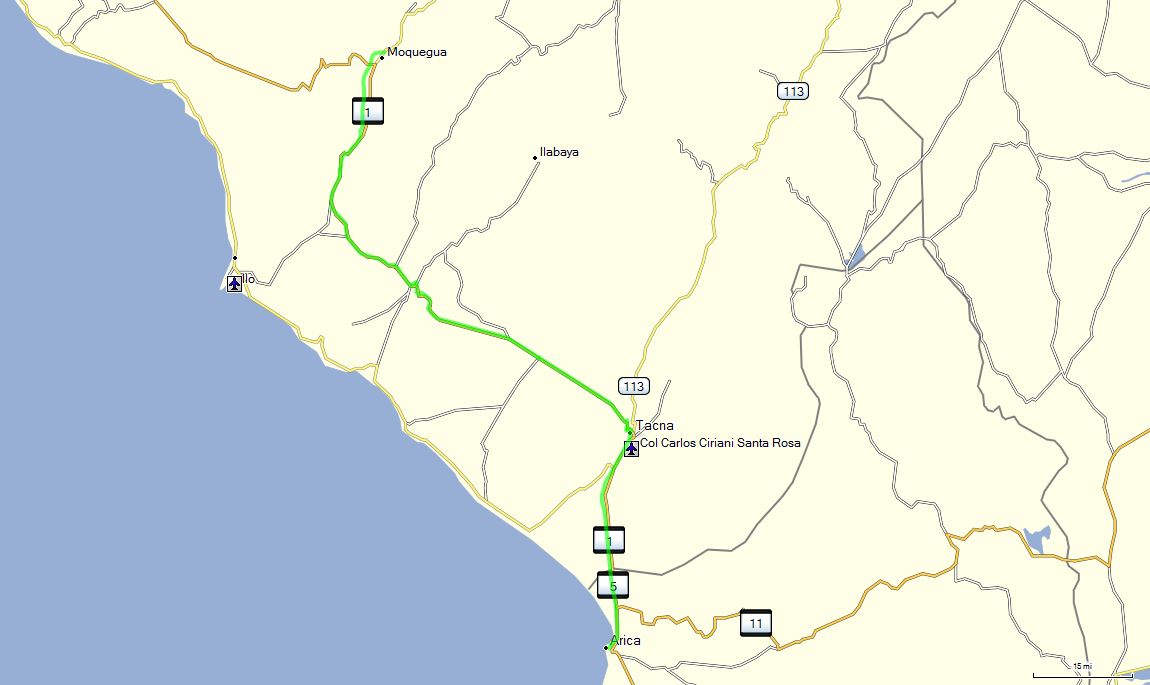 Since this was only a 135 mile day, we leisurely took in all that the desert had to offer. The scenery is surely worth the price of admission. The Pan American Highway leads you through the Atacama Desert and continues to reinforce the fact that this desert is 100 times more arid than Death Valley. We pressed onward with most thinking “this is not the Peru that I envisioned” and then, the oasis valley town of Moquegua appeared before us.