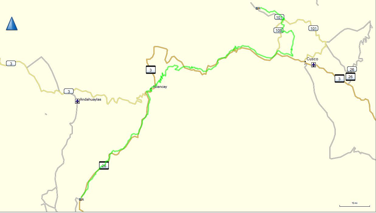 We left Chalhuanca on a 212 mile run to Ollantaytambo. Dropping from 8,600 ft. to 3,600 ft. in 50 miles, we continued through Abacay and started another eastbound climb with the fog, or neblina, setting in. Emergency flashers on, speeds diminished and visor sprayed with defogger, check! It was actually refreshing to change up the riding conditions and the neblina persisted for quite a while.