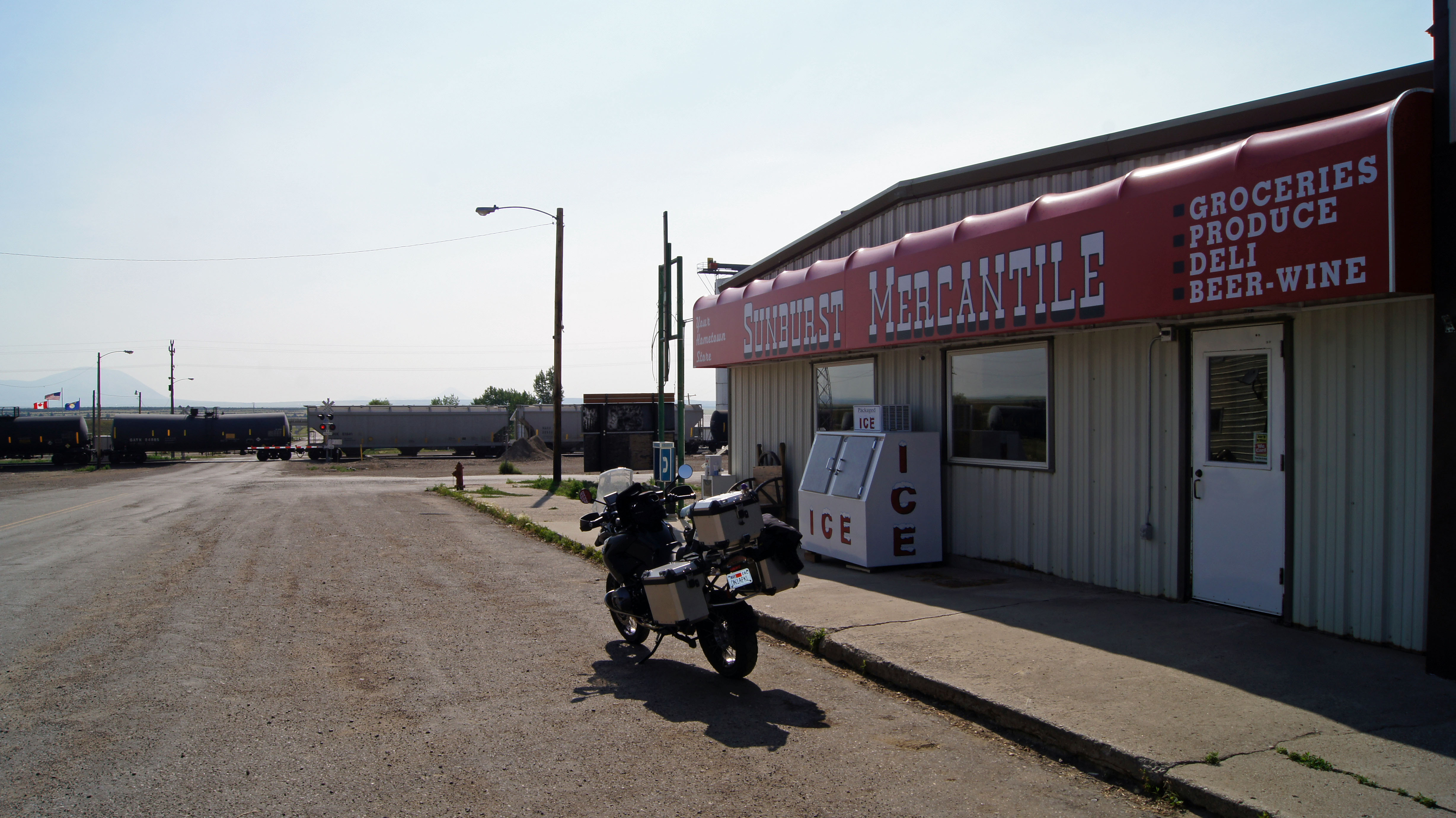 The Thursday morning stop took place in Sunburst MT. A freight train ensured that my stay was longer than planned, but it led to a pleasant discussion with the proprietor of the Sunburst Mercantile. He stocks everything you need and a few that you don’t. Most residents within a 60 mile radius depend on it for their needs.